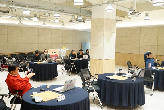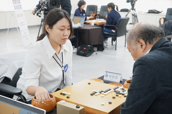 ▲ 추억이 묻어 나는 왕년 '도전 5강' 간 대결. 최근 호조의 강훈 9단(왼쪽)이 장수영 9단을 꺾고 수소도시완주의 승리를 결정했다.
