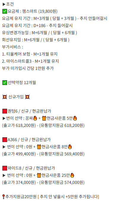 잼스마트 / 부가1개 / 기기 꽁짜 + 페이백 25개 준다는데
