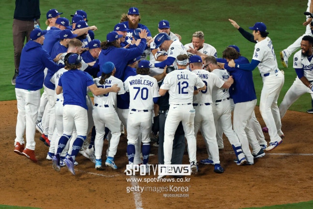 ▲ 끝내기 승리 후 환호하는 LA 다저스 선수들