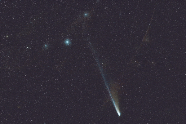 그는 타임랩스 영상도 공개했는데 여기서 위성들이 지나가며 남긴 궤적 사이로, 운석의 자취가 레몬 혜성 주위를 휘감는 모습이 담겨 있다.