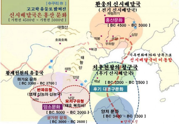 (2) 환웅의 신시배달국 위치는 고고학 관점에서 홍산 문화(BC4500~BC3000)