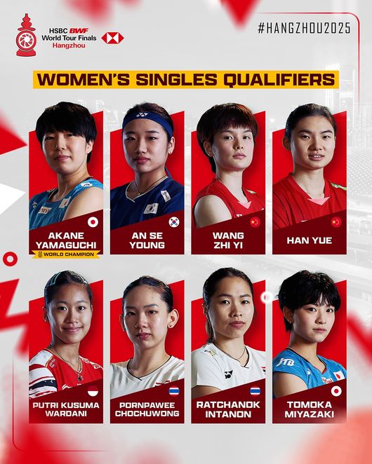 이미 출전 선수도 모두 확정됐다. 안세영을 비롯해 왕즈이와 한웨(이상 중국), 야마구치 아카네와 미야자키 도모카(이상 일본), 폼파위 초추옹과 랏차녹 인타논(이상 태국), 푸트리 쿠수마 와르다니(인도네시아)가 우승을 놓고 다툰다.