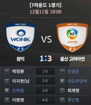 1국 울산 고려아연 안성준(1지명) : 원익 박정환(1지명)