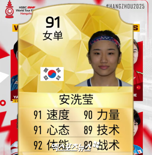 안세영의 경우 ▲체력 92점 ▲스피드 91점 ▲정신력 91점 ▲파워 90점을 받았다. 오히려 기술이 89점으로 미세하게 떨어진다고 주장했다.