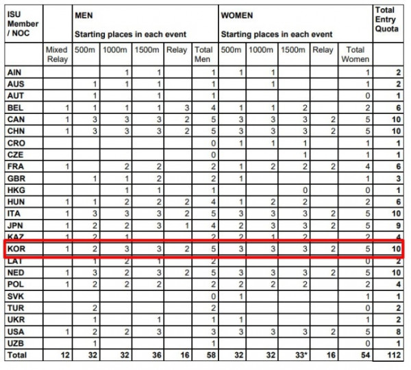 한국은 남자 500m에서 올림픽 쿼터 1장을 놓쳤지만 최소한의 목표를 달성하는데 성공했다.