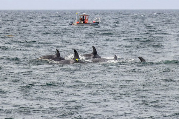 포식자와 피식자 관계인 범고래와 돌고래가 협동해서 연어를 사냥하는 모습이 포착됐다. 범고래와 돌고래가 협동해서 사냥하는 사례는 처음이다.