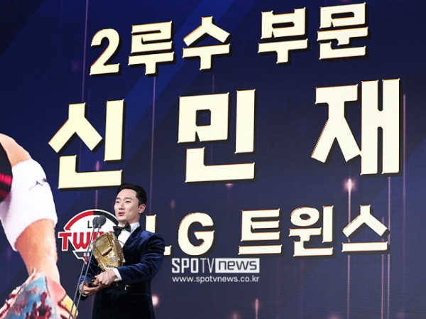 리그에서 차지하는 존재감도 엄청나다. 국가대표 2루수이자 골든글러브 2루수다. 신민재는 지난 9일 '2025 신한 SOL뱅크 KBO 골든글러브' 시상식에서 2루수 부문 수상자로 선정됐다. 유효표 316표 중에서 무려 282표를 휩쓸고 데뷔 첫 골든글러브를 차지했다. 올해 LG가 배출한 유일한 황금장갑의 주인공이자, LG 2루수로는 1994년 박종호 이후 31년 만의 수상자다.