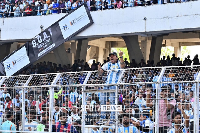 이날 메시는 인도 동북부 골카타를 방문해 'GOAT(the Greatest of all time·역대 최고) 투어' 일정을 소화했다. 약 8만 명을 수용할 수 있는 콜카타 솔트레이크 스타디움에서 메시가 인도 축구팬들과 만나는 행사가 펼쳐질 예정이었다.