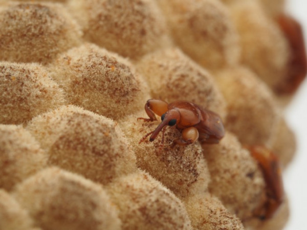 이번주 국제학술지 '사이언스'에는 자외선 형광 염료로 덮인 멕시코소철(학명 Zamia furfuracea) 수꽃 위에 딱정벌레의 일종인 소철바구미(학명 Rhopalotria furfuracea)들이 돌아다니는 모습이 담겼다. 바구미들은 상대적으로 온도가 높은 가로줄 틈새 부분으로 유인돼 꽃가루를 찾고 멕시코소철의 수분을 돕는다.