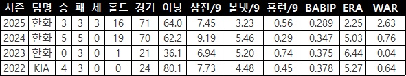 ▲ KT 한승혁의 주요 투구기록(출처: 야구기록실 kbreport) |