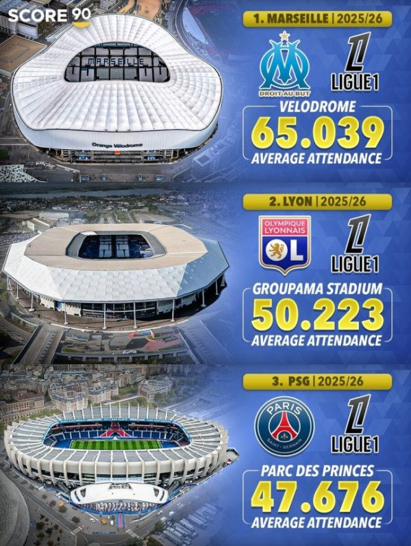 토트넘이 3위에 이름을 올렸다. '스코어90' 기준 토트넘은 평균 60,984명의 관중들이 경기장을 찾은 것으로 알려졌다. 이는 최근 불거진 토트넘의 관중 수 이슈와는 사뭇 다르다. 손흥민 이적 이후 경기장을 찾는 발걸음이 줄어들면서 빈 좌석이 늘어났다는 보도였다.