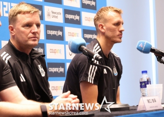 2025 쿠팡플레이 시리즈 뉴캐슬 유나이티드 FC 기자회견 당시 댄 번(오른쪽). /사진=김진경 대기자