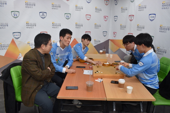 막판에 몰린 수려한 합천 고근태 감독은 반격을 위해 막내 김승진 카드를 꺼내들었다. 상대는 12월 국내 랭킹 9위이자, 바둑리그 6승 2패로 다승 2위에 올라있는 상승세의 박민규였다.