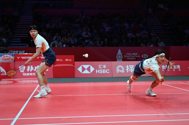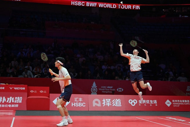 배드민턴 남자 복식 세계 랭킹 1위 김원호-서승재는 19일 중국 항저우에서 열린 세계배드민턴연맹(BWF) 월드투어 파이널스 2025 남자 복식 조별리그 A조 최종전에서 말레이시아의 만 웨이 총-카이 운 티 조를 상대로 세트 스코어 2-1(25-23 14-21 21-19)로 이겼다. 앞서 대만 팀과 인도네시아 팀을 모조리 꺾었던 김원호-서승재는 말레이시아 팀마저 꺾고 3연승, 조 1위로 4강에 안착했다.