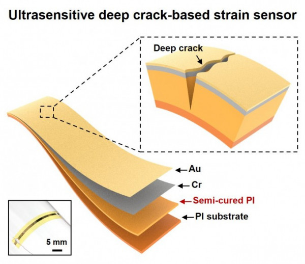 균열이 지나치게 깊으면 전기 흐름이 끊겨 센서로 사용하기 어렵다. 연구팀은 전극 아래에 '반경화 폴리이미드'라는 중간층을 넣어 이를 방지했다. 작은 변화에 극도로 예민하면서도 잘 부러지지 않도록 설계한 것이다.
