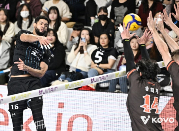 현대캐피탈 레오가 20일 홈에서 열린 OK저축은행전에서 스파이크를 날리고 있다. 사진=KOVO 제공 |