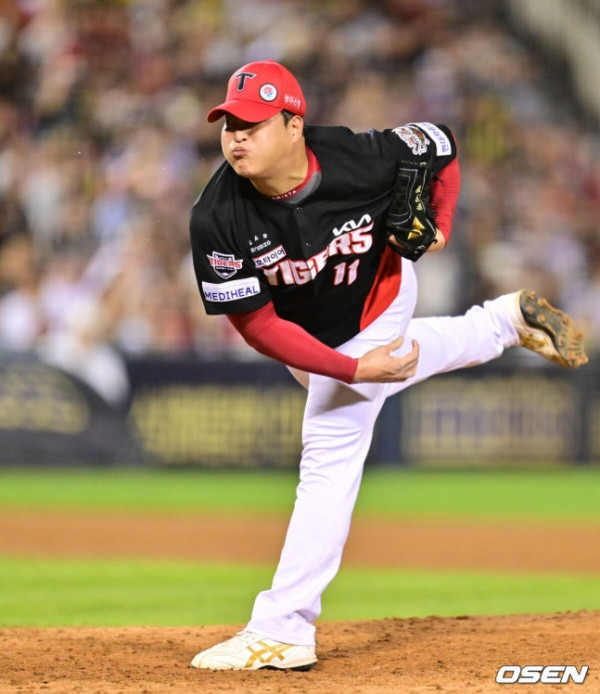 [OSEN=광주, 이대선 기자] 10일 오후 광주-기아 챔피언스필드에서 2025 신한 SOL Bank KBO리그 KIA 타이거즈와 삼성 라이온즈의 경기가 열렸다.KIA는 네일, 삼성은 가라비토를 선발 투수로 내세웠다.6회초 KIA 조상우가 역투하고 있다. 2025.09.10 /[email protected]