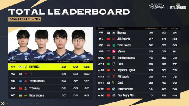 DNF는 19일부터 21일까지 사흘간 서울 성수에서 열린 ‘펍지 플레이어스 마스터스 인비테이셔널(PPMI)’에서 총 15개 매치 동안 138점(킬 포인트 99점)을 누적해 우승을 차지했다.
