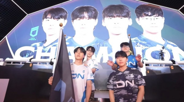 우승 후 DN 프릭스 선수단. 크래프톤 제공