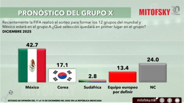 멕시코 여론조사 업체 미토프스키가 멕시코 국민 1000명을 대상으로 실시한 2026 국제축구연맹(FIFA) 북중미 월드컵 A조 1위 조사 결과. 한국은 멕시코에 이어 2번째인 17.1%의 지지를 받았다. /사진=미토프스키 홈페이지 캡처