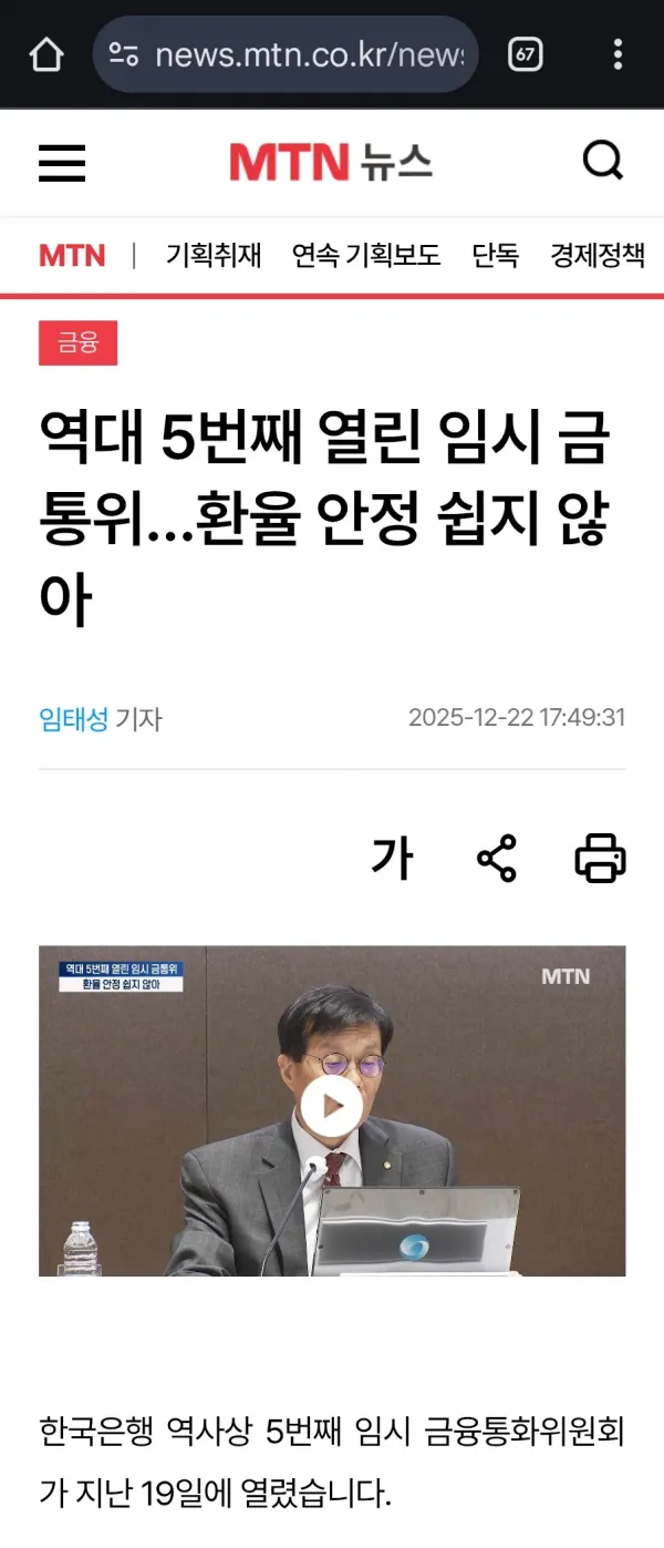 환율 대책 논의 위해 역사상 5번째의 임시금통위 개최.