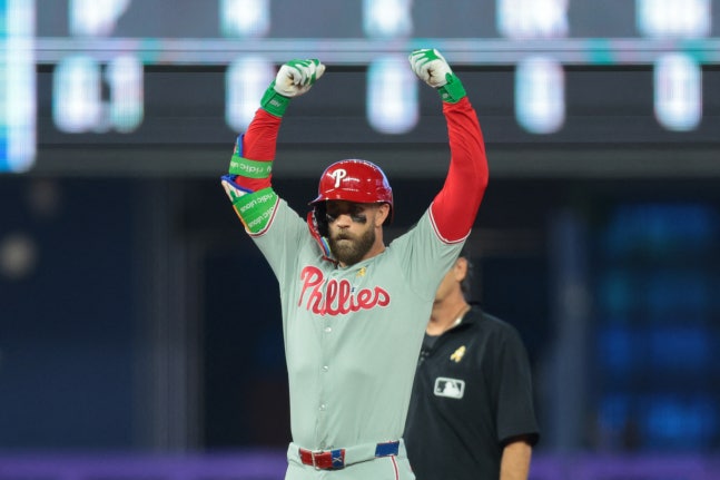 ![]() 브라이스 하퍼가 2026 월드베이스볼클래식 대표팀에 합류한다. 사진은 필라델피아에서 활약 중인 하퍼. /사진=로이터 |