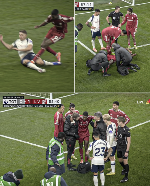 2025-2026시즌 프리미어리그 17라운드 토트넘 홋스퍼 VS 리버풀전 알렉산더 이삭이 마키 판 더 펜의 태클을 받고 쓰러졌다. ESPN FC