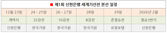 휴식일 없이 29일까지 결승 진출자를 가려낸 후 내년 2월 결승3번기로 초대 우승컵의 주인공을 다툰다. 상금은 우승 4억원, 준우승 1억원, 4강 5000만원, 8강 2500만원, 16강 1250만원, 32강 500만원이다.