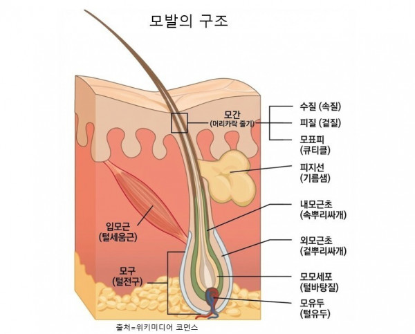 머리카락이 만들어지는 곳은 두피 속 모낭 바닥에 둥글게 부풀어 있는 모구(hair bulb) 안의 모유두(dermal papilla)라는 혈관·신경 덩어리다. 이곳에 산소와 영양분이 공급되면서 머리카락이 만들어지기 시작한다. 모모세포라는 각질세포가 분열하면서 단단해지고, 이 덩어리가 위로 밀려 올라오며 우리 눈에 보이는 머리카락이 된다. 두피 밖으로 삐죽이 솟아나온 머리카락은 사실은 죽은 단백질(케라틴) 덩어리다. 머리카락이 자라는 기간은 대략 2~6년이다(성장기). 그런 다음 성장을 멈췄다가(휴지기) 두세달 후 빠져버린다(퇴화기).