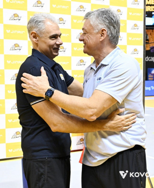 레오날도 카르발류 KB 감독(왼쪽)과 헤난 달 조토 대한항공 감독(KOVO제공)