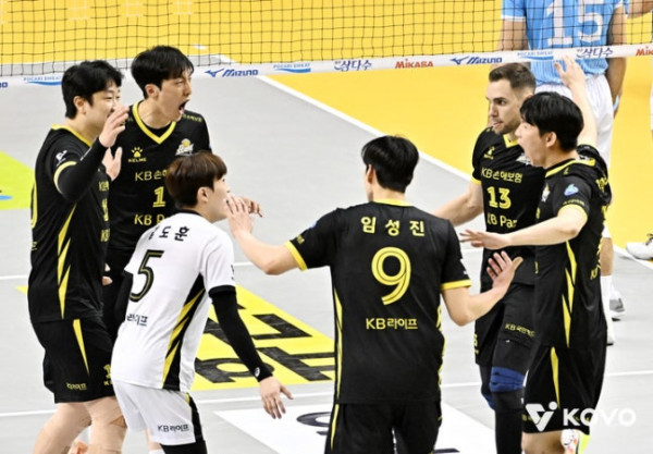 KB손해보험은 25일 경기도 의정부 경민대체육관에서 열린 2025-26시즌 진에어 V-리그 남자부 경기에서 대한항공에 세트스코어 3-1(19-25, 27-25, 25-21, 25-20)로 역전승했다.