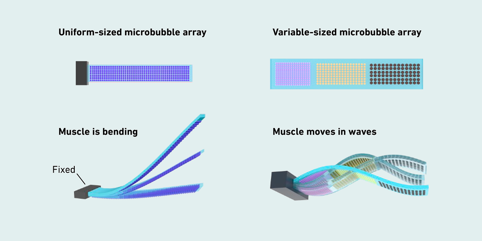 다니엘 아메드 교수는 “물결 모양 운동은 우리에게 정말 하이라이트였다”며 “미세 기포를 사용해 단순한 움직임뿐만 아니라 살아있는 유기체처럼 복잡한 패턴도 구현할 수 있다”고 말했다.