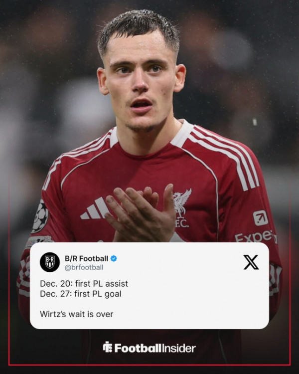 지난 20일(현지시간) 토트넘전을 통해 잉글랜드 프리미어리그 첫 어시스트를 기록한 뒤 27일 첫 골을 터뜨린 리버풀 플로리안 비르츠. /사진=풋볼인사이더 SNS 캡처
