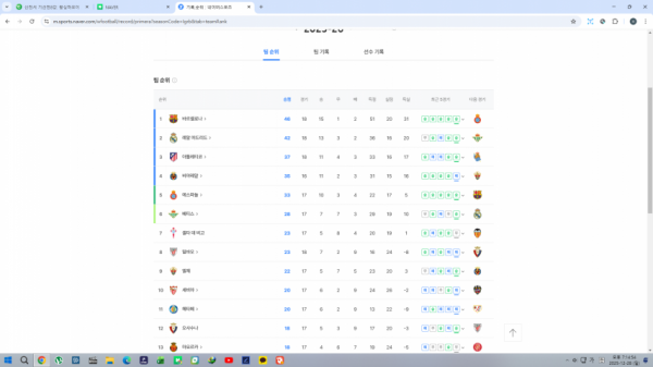 | 순위 | 팀 | 경기 | 승 | 무 | 패 | 승점 |