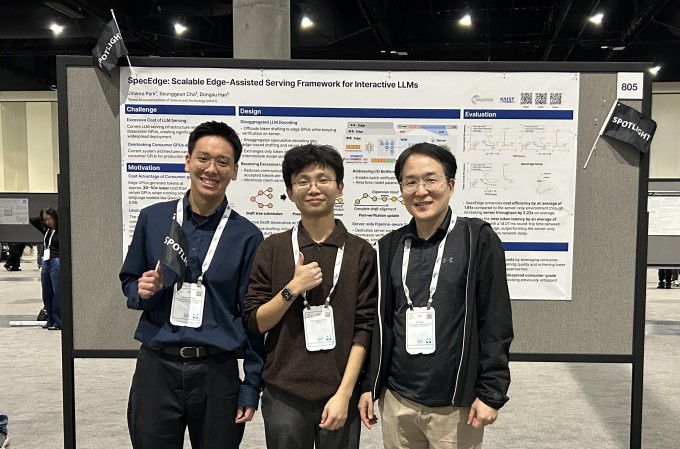 KAIST는 한동수 전기및전자공학부 교수팀이 데이터센터 밖에 널리 보급된 개인 소비자가 쓰는 수준의 GPU를 활용해 LLM 인프라 비용을 크게 낮출 수 있는 새로운 기술 '스펙엣지(SpecEdge)'를 개발했다고 28일 밝혔다. 연구 결과는 12월초 미국 샌디에이고에서 열린 인공지능 분야 최고 권위 국제학회인 ‘신경정보처리시스템학회(NeurIPS)’에서 스포트라이트(상위 3.2% 우수 논문)로 선정돼 발표됐다.