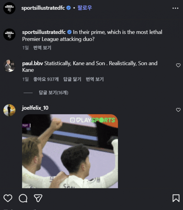 사진 속 두 선수는 토트넘 시절 환하게 웃으며 함께 서 있는 모습으로 등장해 팬들의 향수를 자극했다.