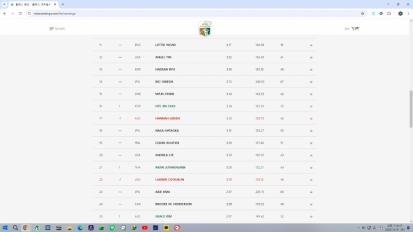 ~25위 사이에 2명