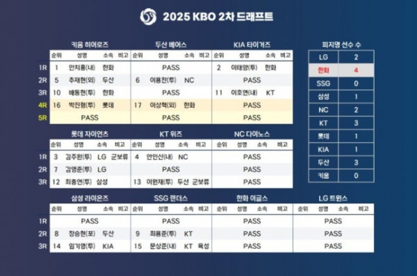 지난 11월 시행된 2026 KBO 2차 드래프트 결과. /사진=KBO 제공
