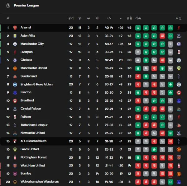 [본머스 v 아스날] 경기종료! 아스날이 본머스 원정에서 귀중한 승리 거두며 2위 빌라와의 승점을 6점차로 벌립니다