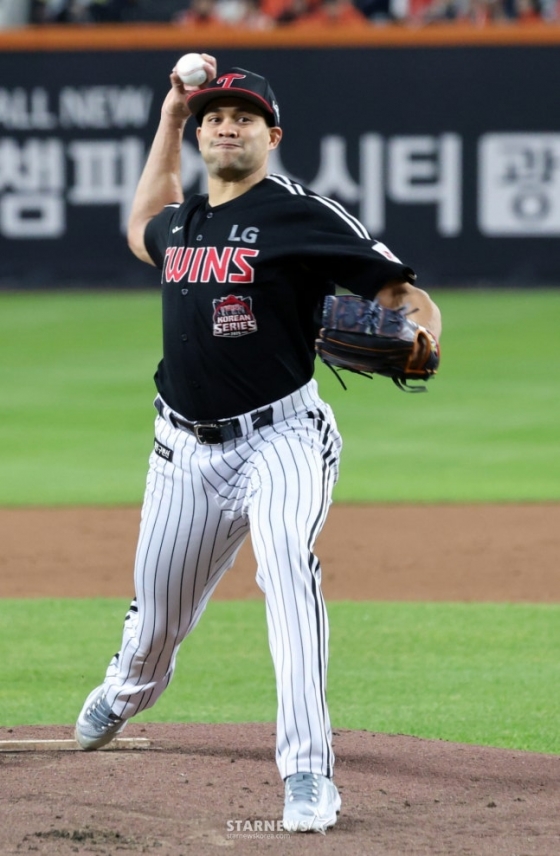 한국시리즈 4차전에서 역투를 펼치고 있는 치리노스. /사진=강영조 선임기자