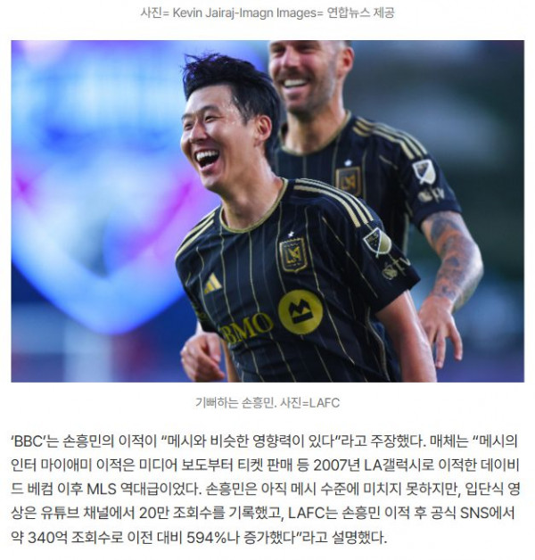 “손흥민, 기량 저하?…LA 이적 후 활약 봐!” 英 BBC, ‘메시급 영향력’ 극찬