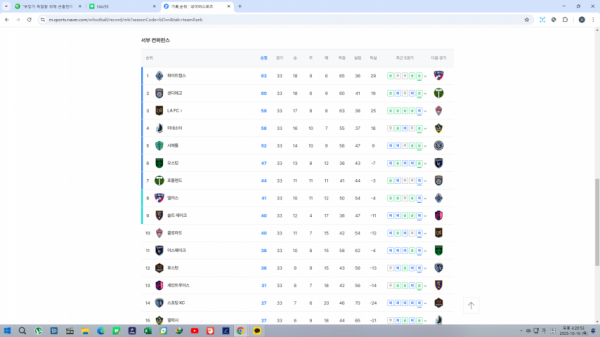 | 순위 | 팀 | 경기 | 승 | 무 | 패 | 승점 |