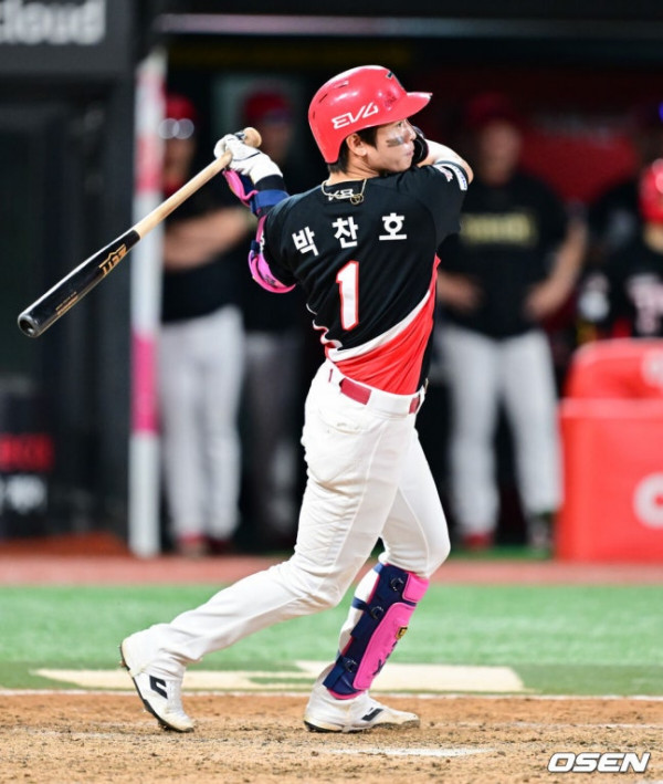 [OSEN=수원, 박준형 기자] 30일 오후 수원KT위즈파크에서 ‘2025 신한 SOL BANK KBO리그’ KT 위즈와 KIA 타이거즈의 경기가 진행됐다.이날 경기에 KT는 문용익(0승 0패)을, KIA는 올러(9승 5패)를 선발투수로 내세웠다. 9회초 KIA 선두타자 박찬호가 안타를 날리고 있다. 2025.08.30 / [email protected]