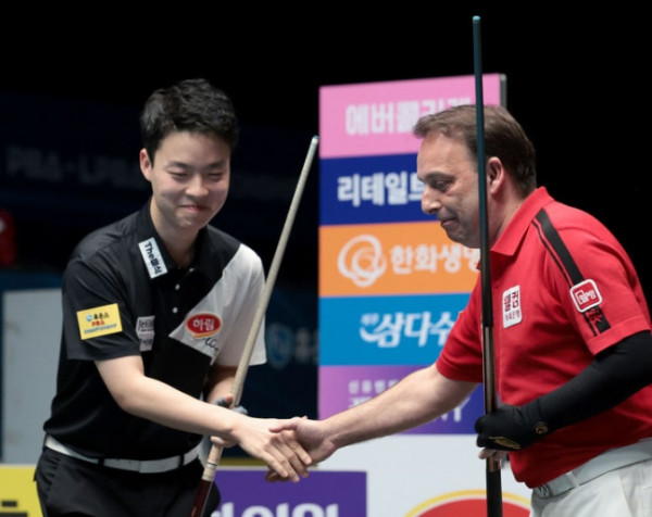 김영원 선수가 현재 18세다. 김영원 선수와 맞붙는다고 했을 때 어떤 느낌이었는지. 또한 현재 3쿠션의 레전드 선수로서 그에게 어떤 말을 해주고 싶은지.