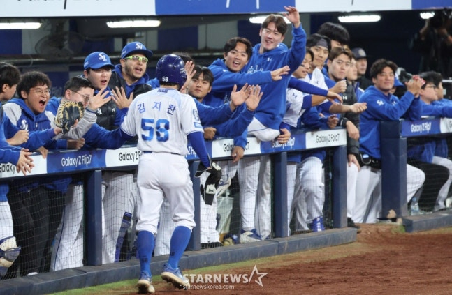 한화와 플레이오프를 치르는 삼성 선수단. /사진=스타뉴스