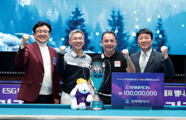 한편 대회 한 경기 최고 애버리지를 기념하는 웰컴톱랭킹(상금 400만원) 상은 이충복(하이원리조트·애버리지 3.000)에게 돌아갔다. 피비에이는 16일부터 경기도 고양 킨텍스 PBA 스타디움에서 팀리그 4라운드를 재개한다.