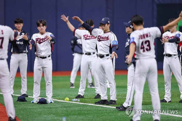 (서울=연합뉴스) 신현우 기자 = K-베이스볼 시리즈 한국과 체코의 국가대표 평가전을 하루 앞둔 7일 서울 고척스카이돔에서 한국 대표팀 박영현 등 선수들이 훈련하고 있다. 2025.11.7 [email protected]