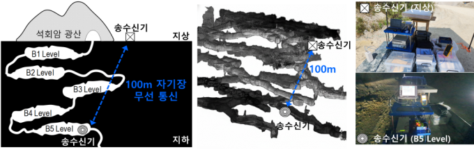 지하 광산은 신호 감쇠가 매우 심해 기존 무선통신 기술로는 연결이 되지 않는다. 연구팀은 지중 매질에서 자기장이 안정적으로 전달되는 특성에 주목하여 저주파 자기장 기반 통신 시스템을 개발했다.