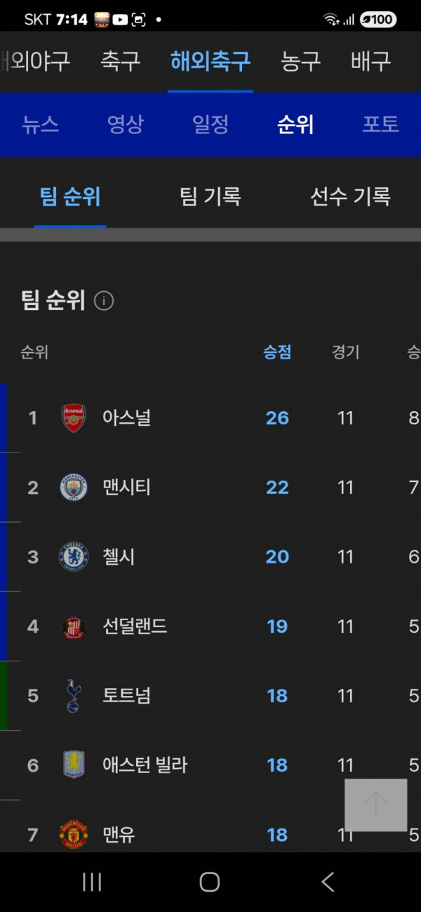 | 순위 | 팀 | 경기 | 승 | 무 | 패 | 승점 |