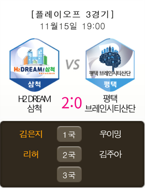 ▲ 플레이오프 2경기 1국 평택 브레인시티산단 우이밍 vs H2 DREAM 삼척 김은지(승)